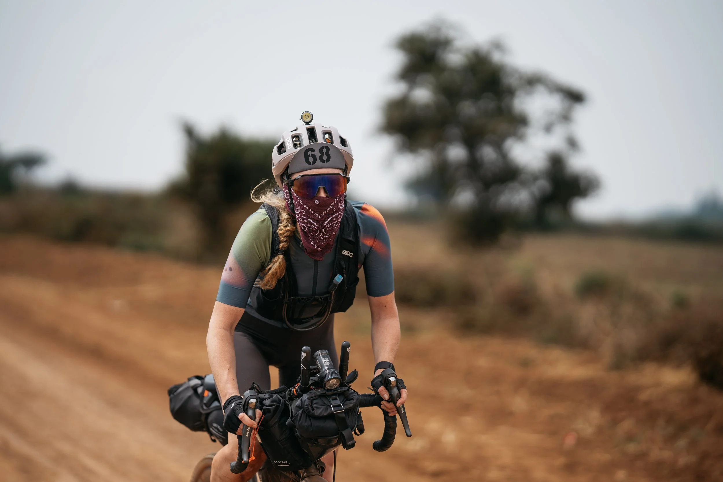 As for gear, Hari shares she was very thankful to have a dynaplug with her. “I got quite a few flats on the first few days, one that needed four plugs in one hole which managed to hold for the rest of the ride. But very pleased I didn’t need to resort to tubes.” In addition, Hari opted for a backpack with a bladder to keep hydrated and loved having the extra capacity for storage too. As for clothing, she explains: “This isn’t the norm for ultra racing, but I packed an extra full set of clothes. I know it is going to be very hot at some points and I plan on washing the kit each night in the hotel shower in the hope this will reduce any saddle sores and increase general comfort levels. The Spectrum Jersey was the perfect weight and comfort for the ride, its breathable qualities worked a dream and the print looked pretty cool in the red dirt landscape!”