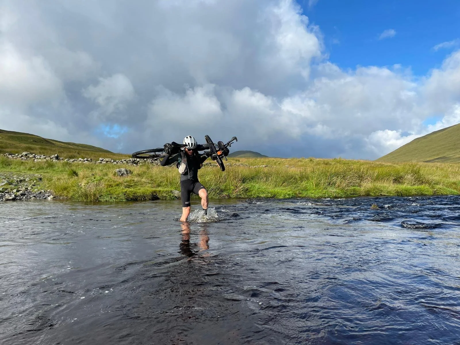 When it finally did, it reminded me of the beauty of the stonewalled Yorkshire Dales. That being said, no beauty can high the brutality of the last 50km. This included the climb up Great Dunn Fell and boggy hike a bike section down into the checkpoint. Being from a running background and fresh off Highland Trail 550, I actually enjoyed this section and found it fun having the bike on my back and quickly pitter pattering over the bog.