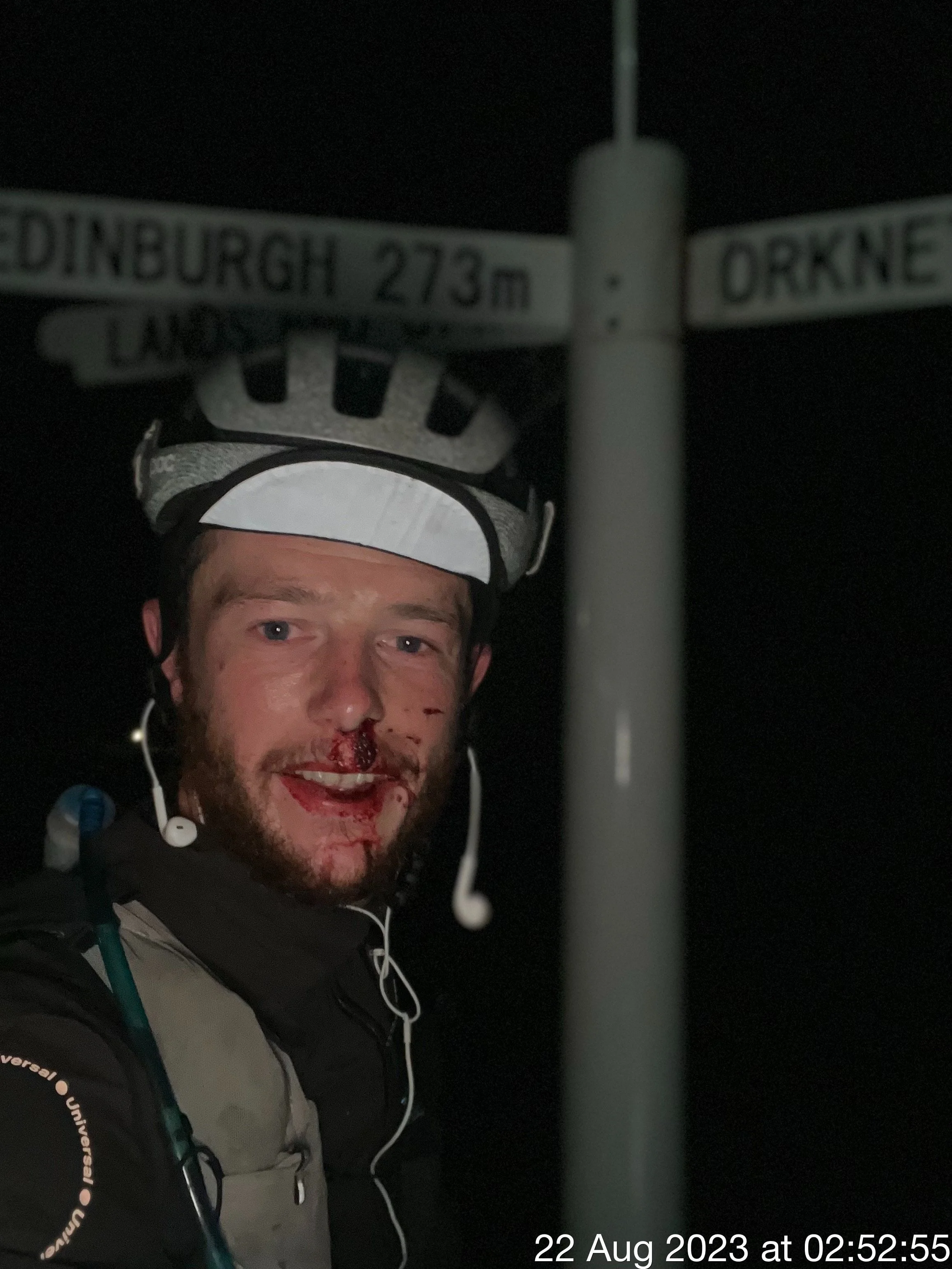 Touchdown in John O’Groats was made at 3.20am. Very happy to be done and time to find a tampon for the nose.